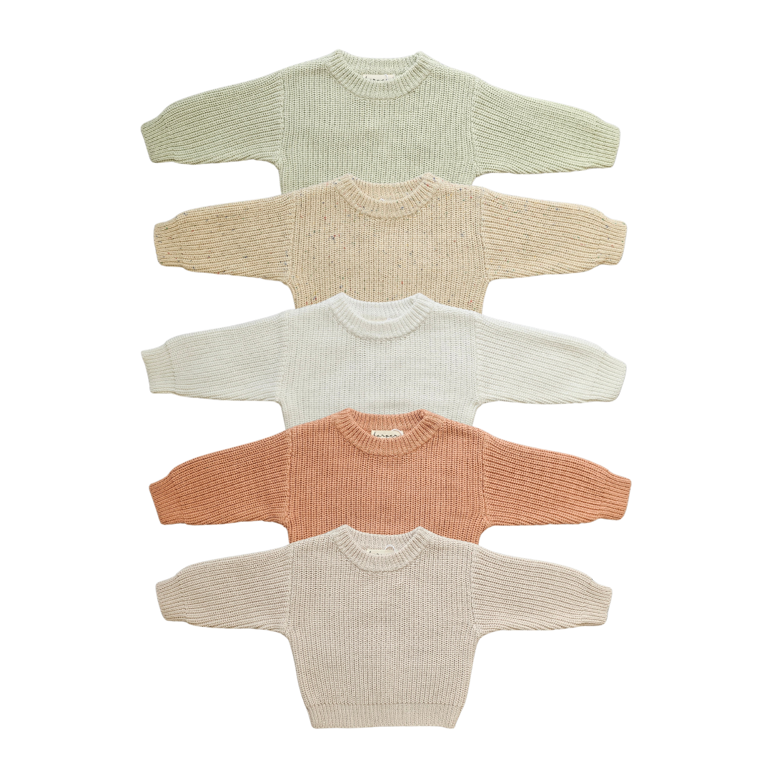 Keep your little one warm and cozy with our cotton chunky knitted jumper. Our unisex jumpers have been featuring thick cuffs and a relaxed, oversized fit for extended wear, making them an essential addition to any wardrobe. Mix and match our jumpers to create a stylish look designed to keep your baby warm from newborn to 3 months and cherished forever.