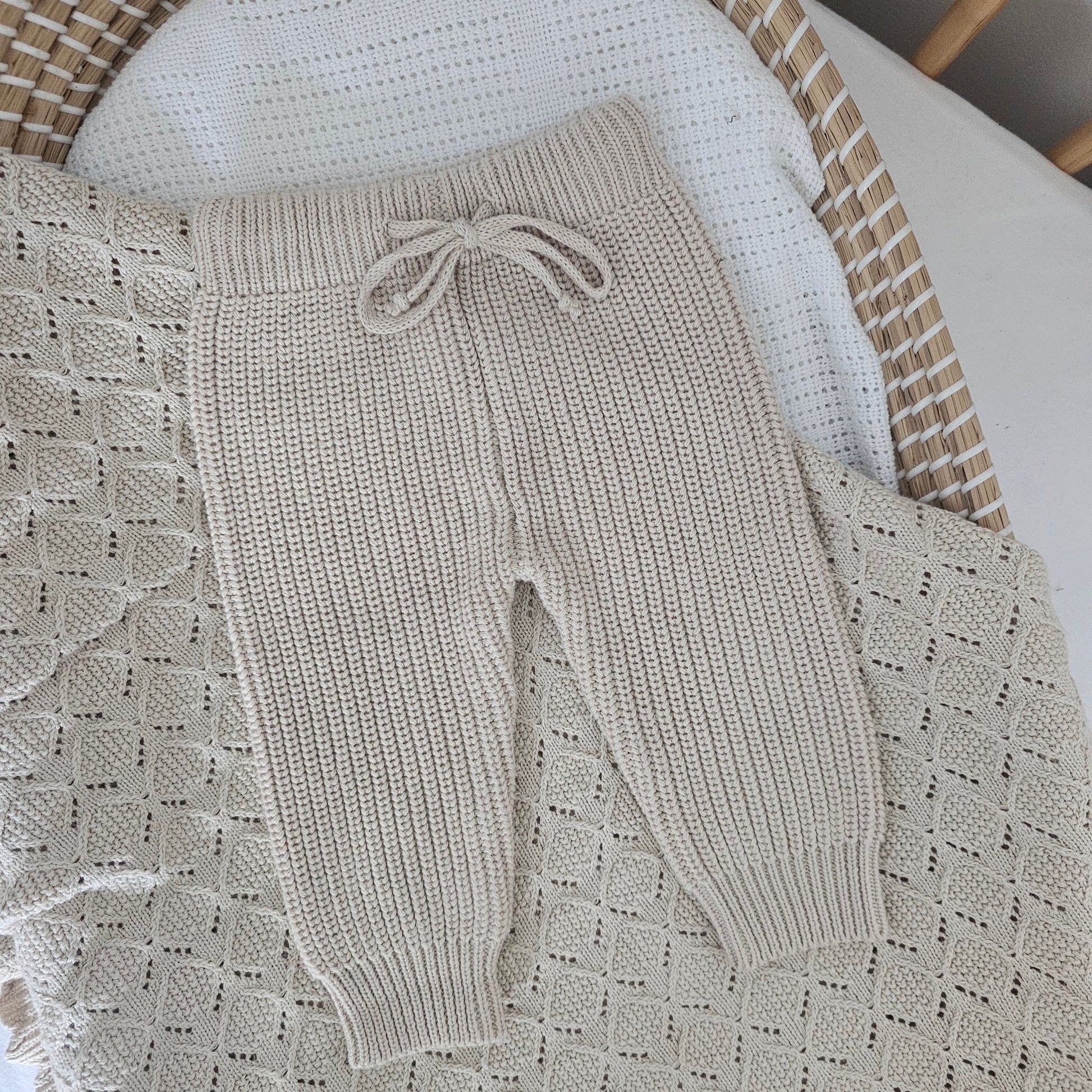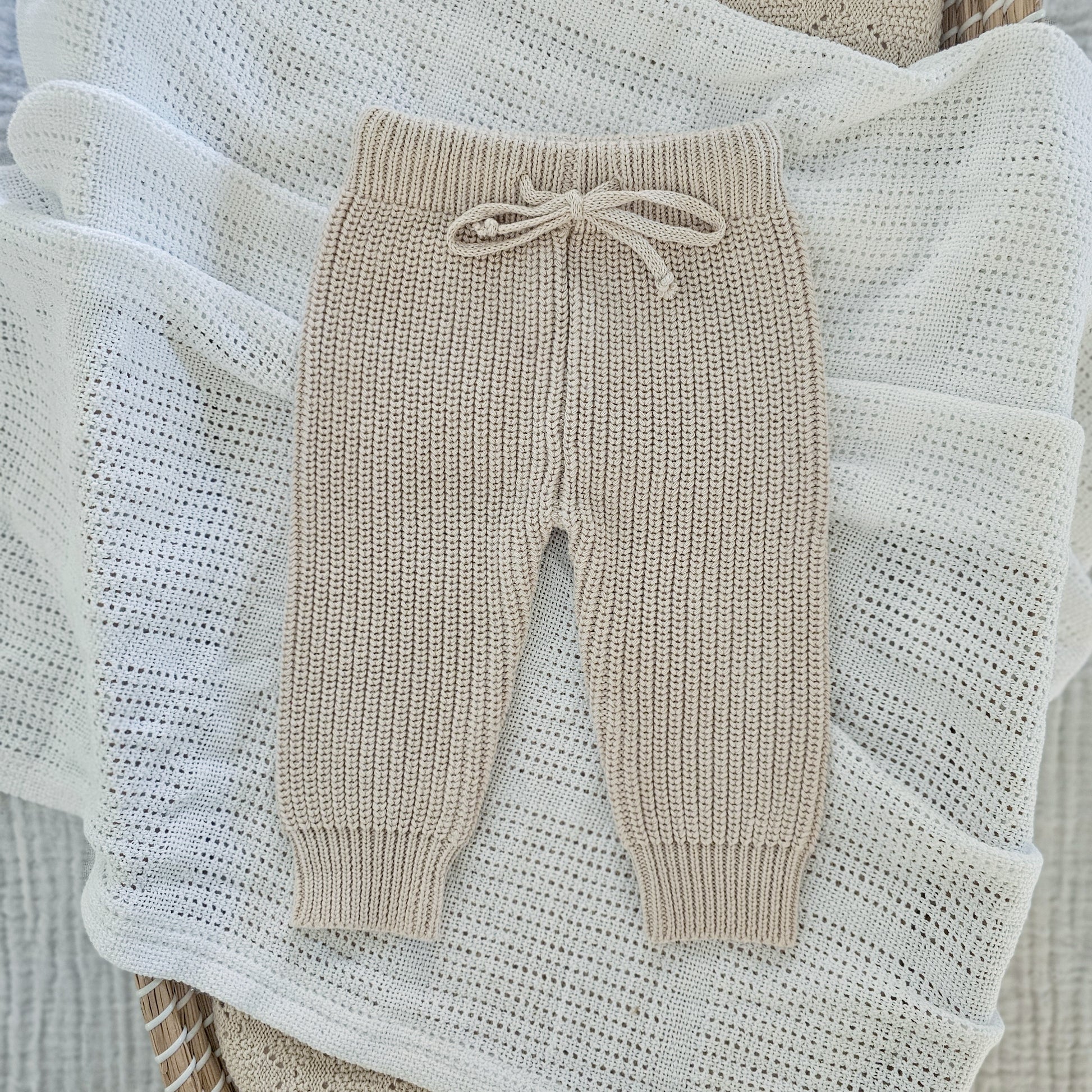 Keep your little one warm and cozy with our 100% cotton chunky knitted pants. Our unisex pants feature thick cuffs designed to be folded where required and are an essential wardrobe staple. Mix and match our pants to create a stylish look and keep your baby warm from newborn to 3 months.
